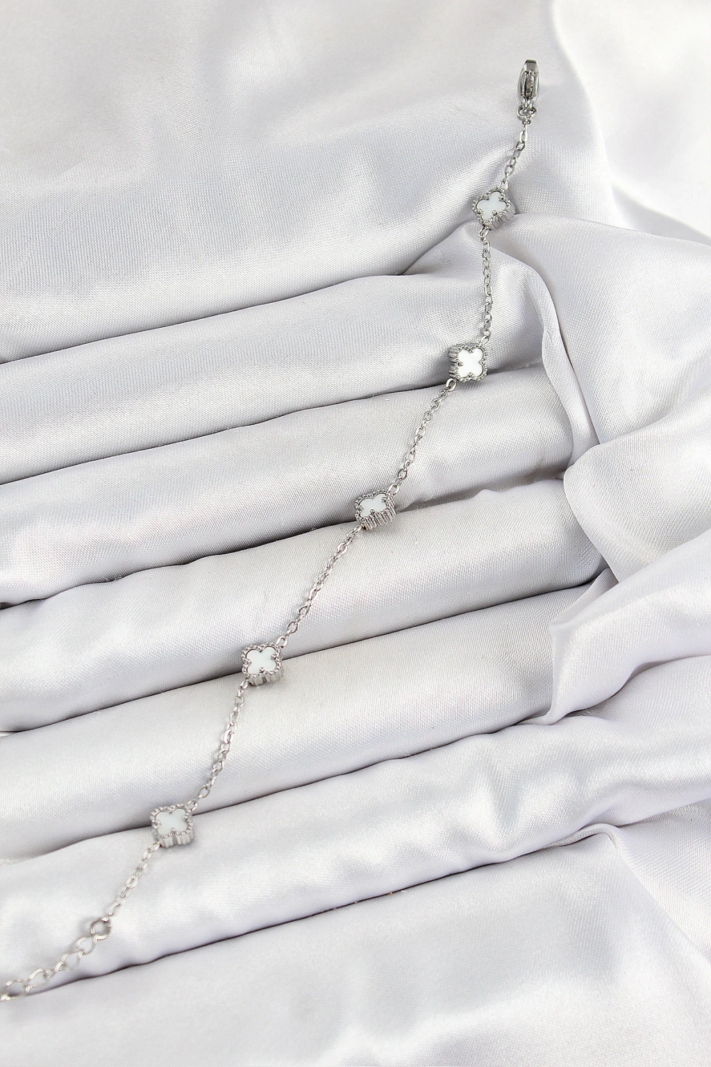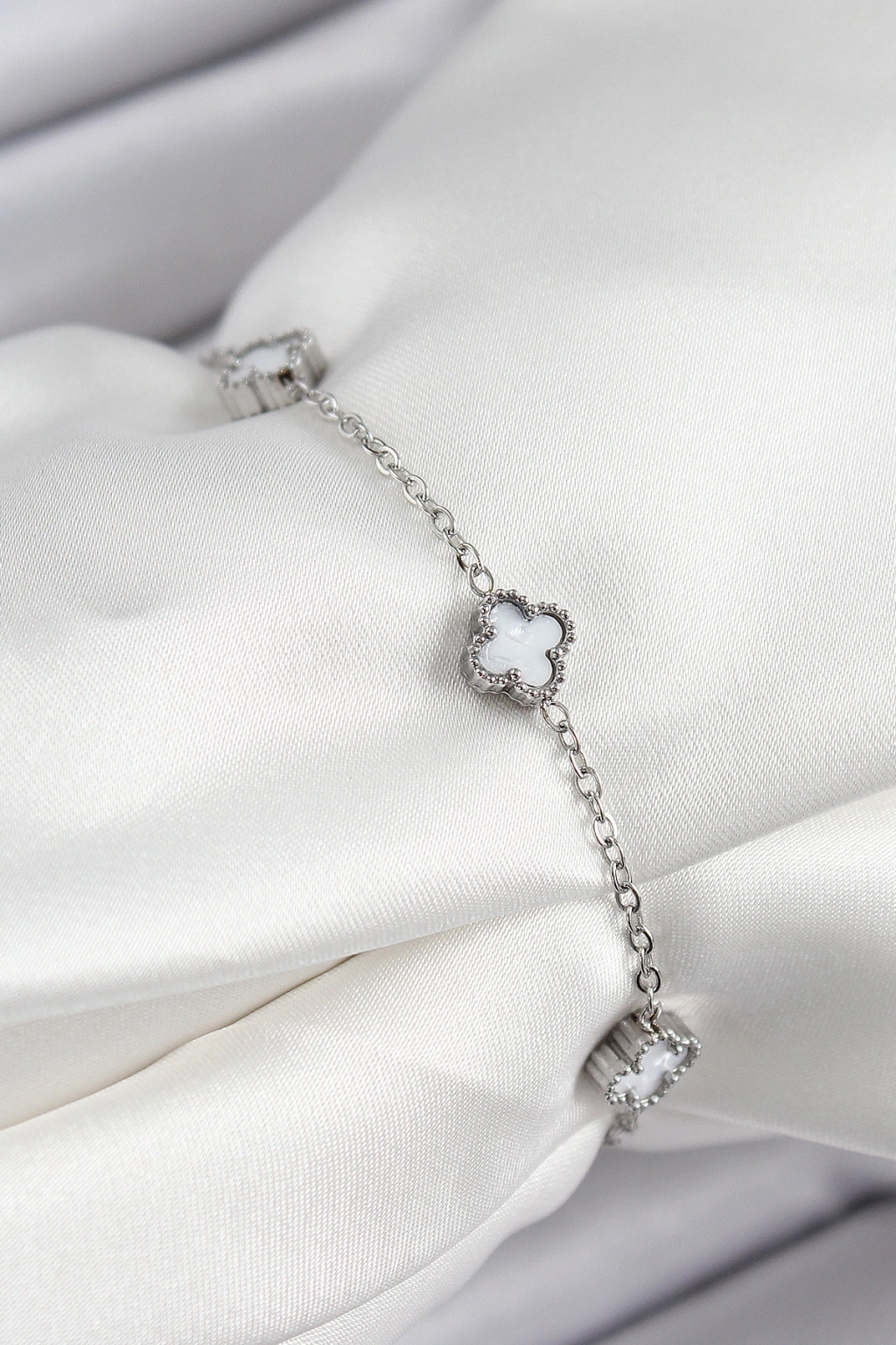 316l Çelik Beyaz Sedef Yonca Model Gümüş Renk Kadın Bileklik