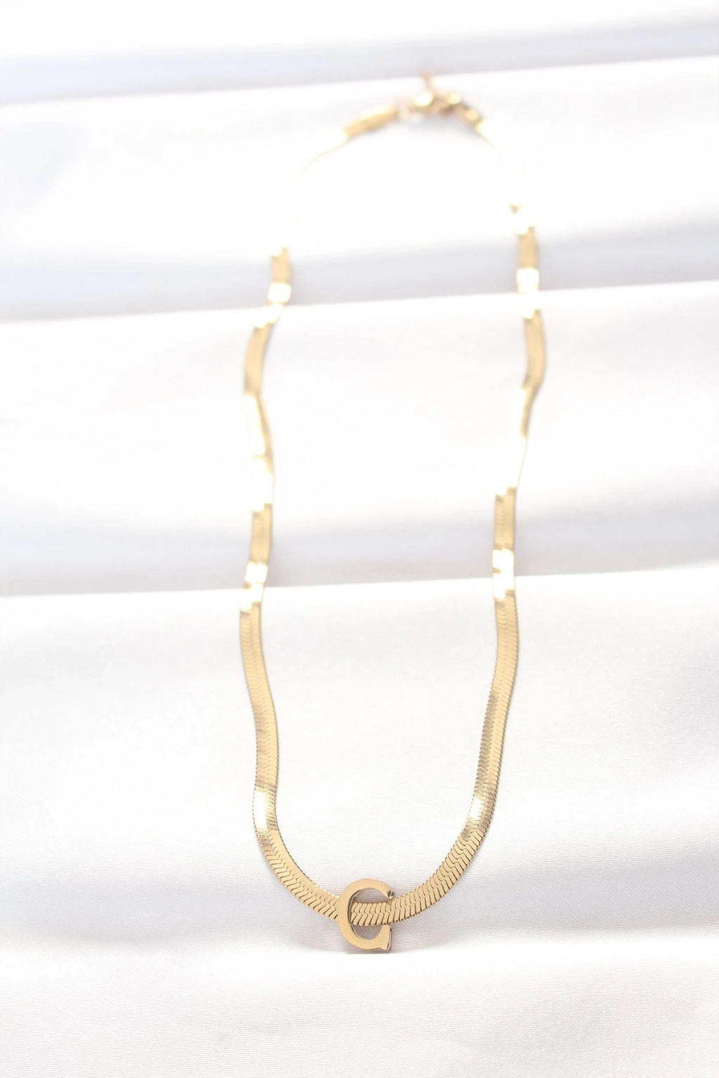 316l Çelik C Harfli Gold Renk İtalyan Zincirli Kolye