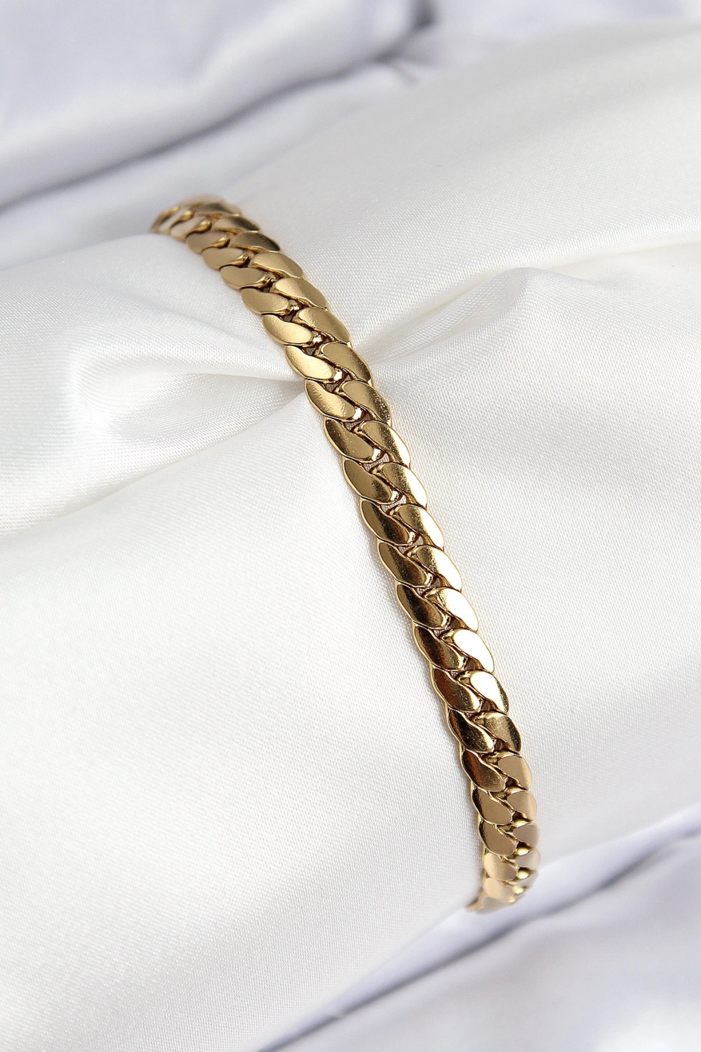 14K Gold Renk Kaplama Ezme Yılan Zincir Model CM Kadın Bileklik