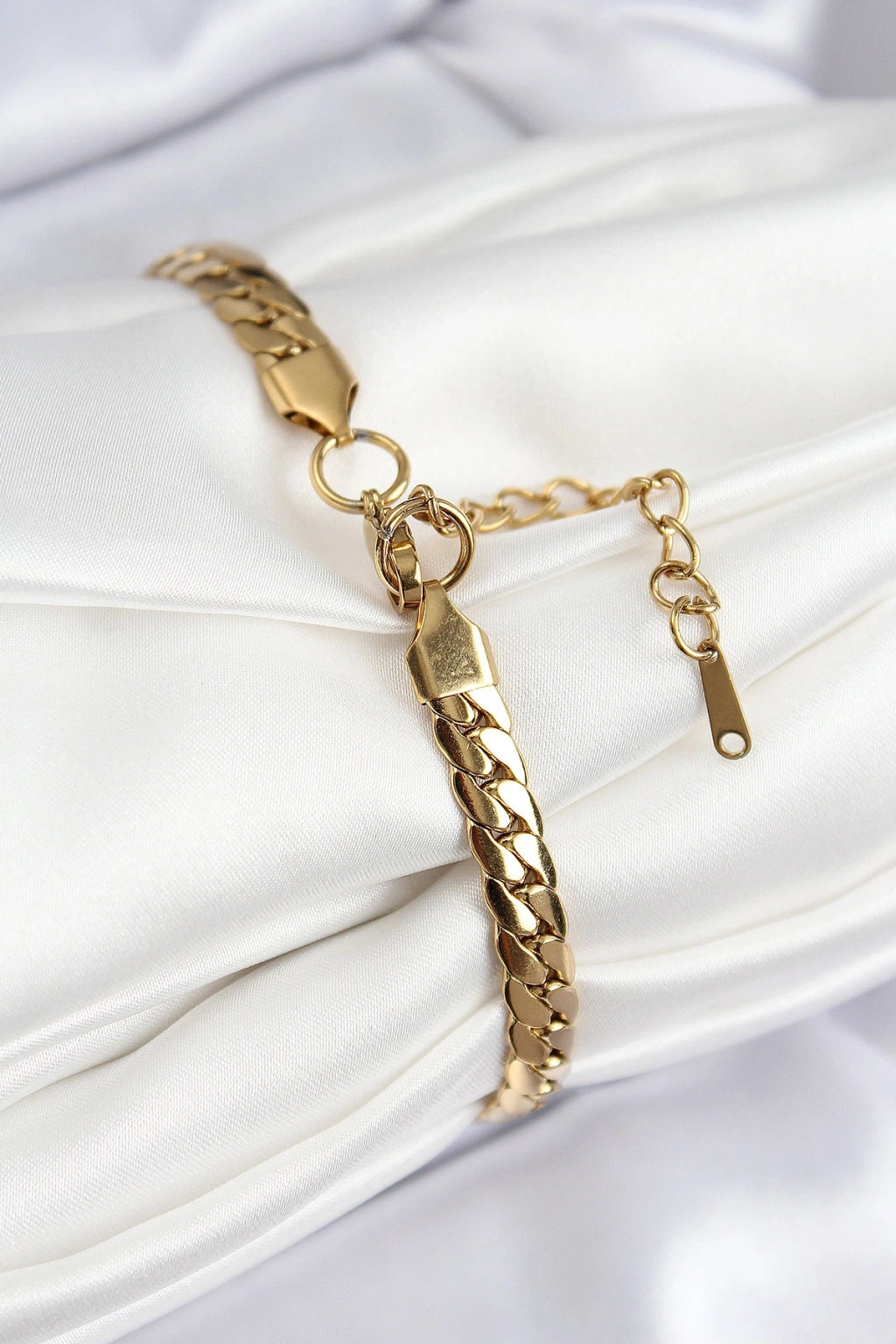 316l Çelik Ezme Zincir Model Gold Renk Kadın Bileklik