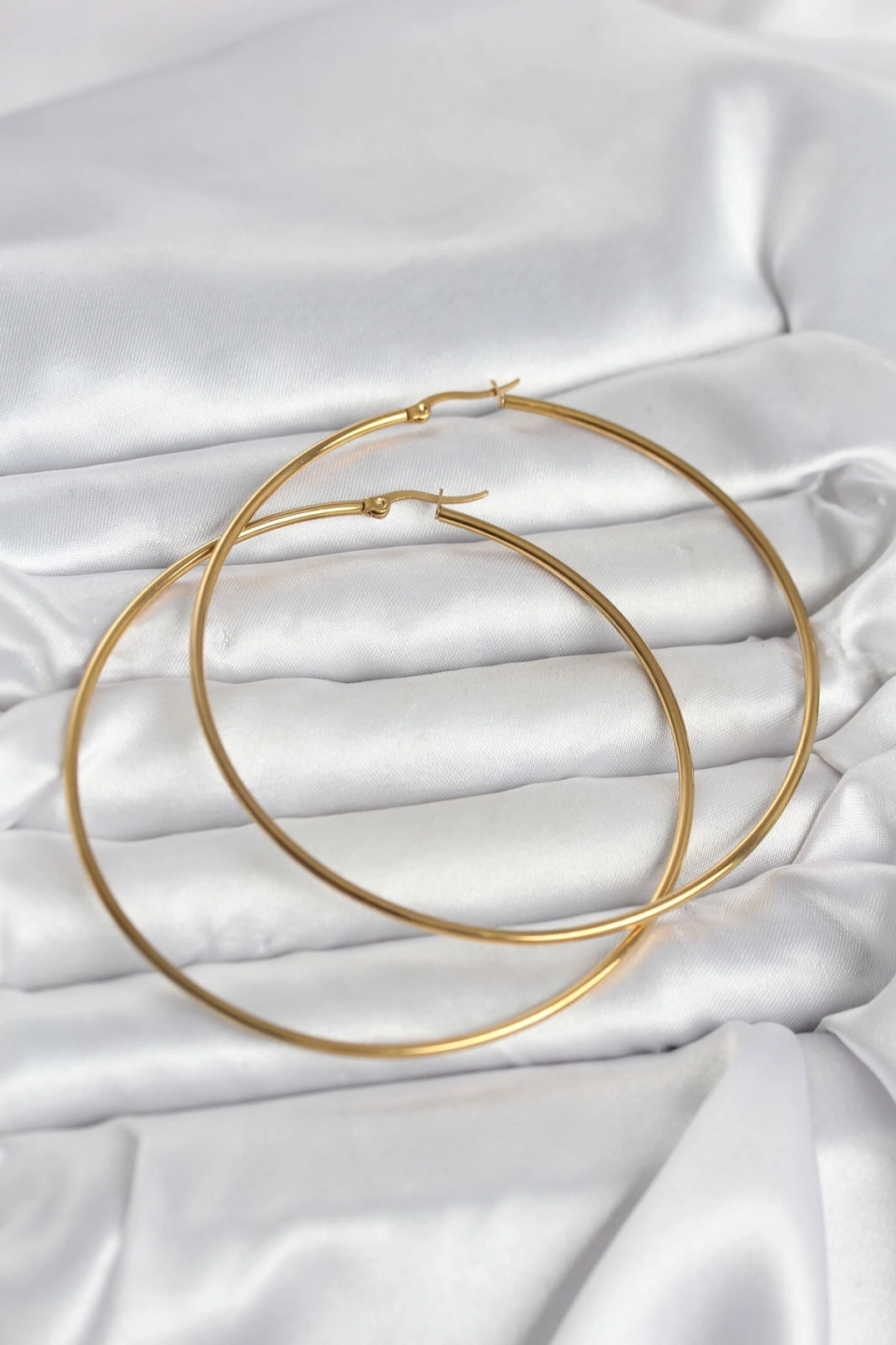 316L Çelik Gold Renk 80 mm Kadın Halka Küpe