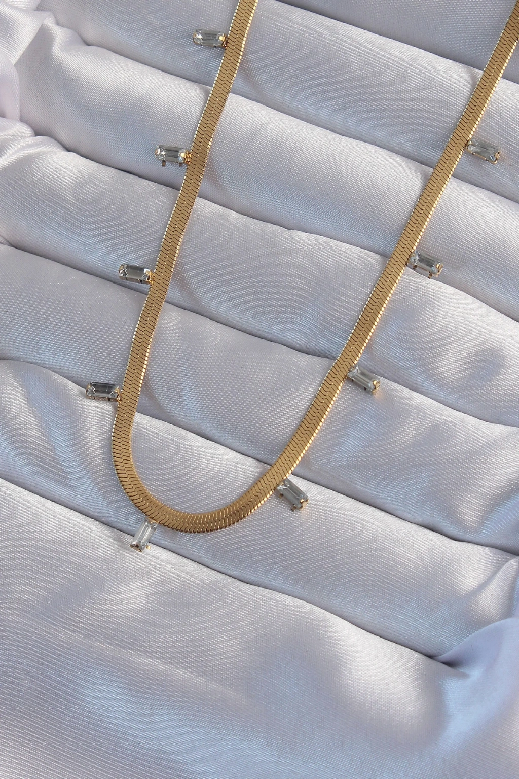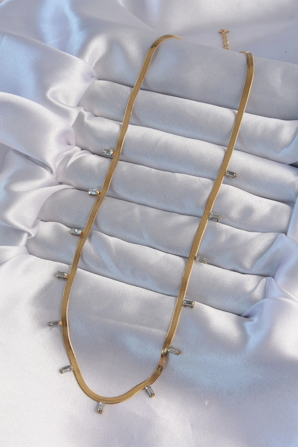 316L Çelik Gold Renk Baget Taşlı İtalyan Zincir Kolye