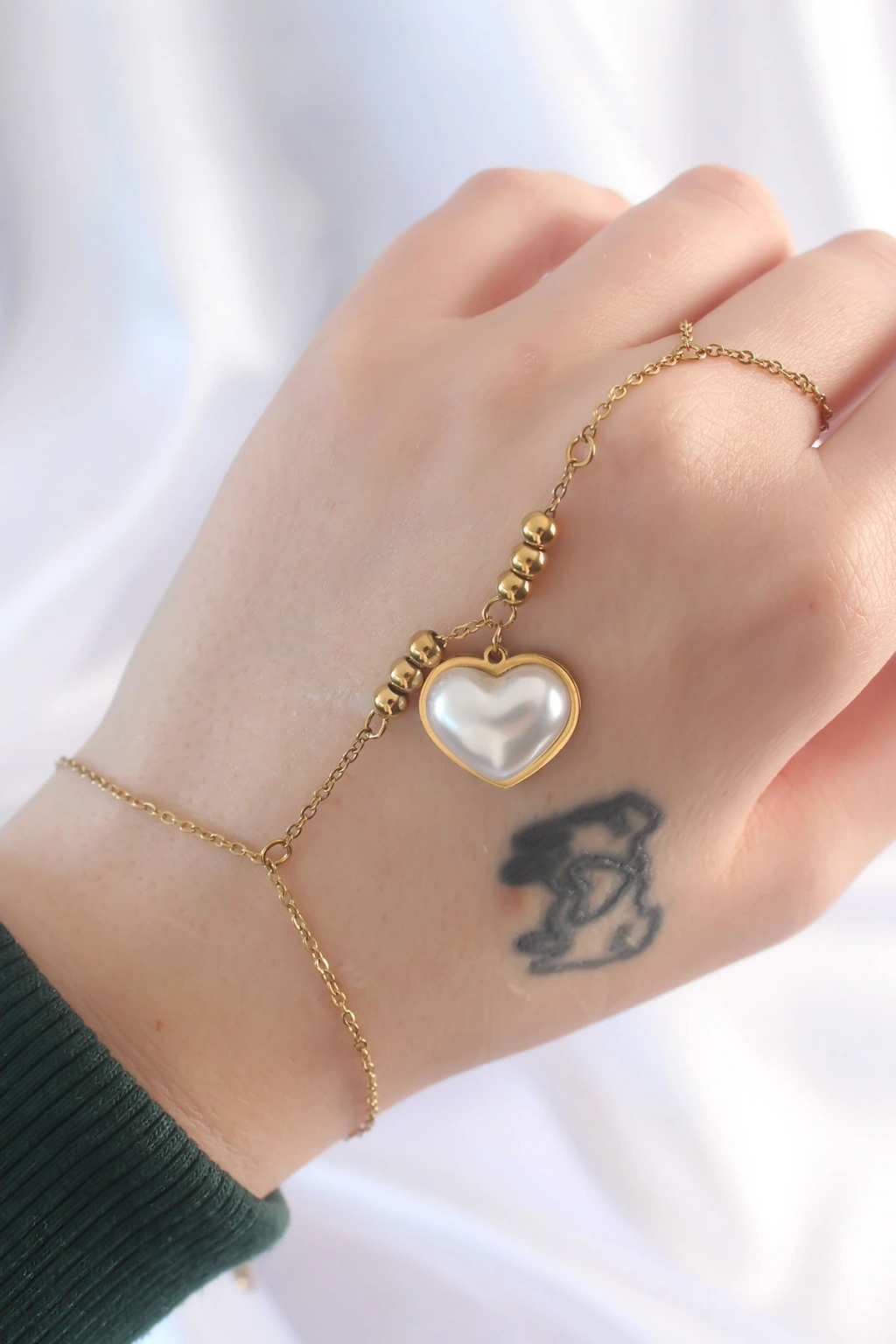 316L Çelik Gold Renk Beyaz Bubble Kalp Tasarımlı Şahmeran