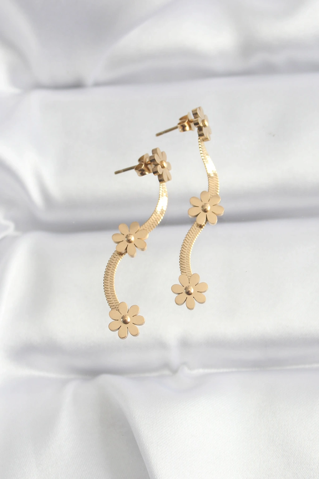 316L Çelik Gold Renk İtalyan Zincir Papatya Küpe