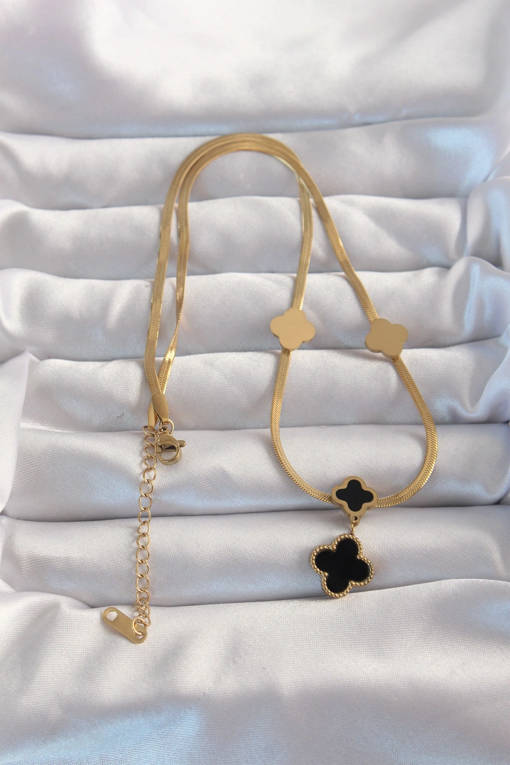 316l Çelik Gold Renk İtalyan Zincirli Mineli Yonca Kolye