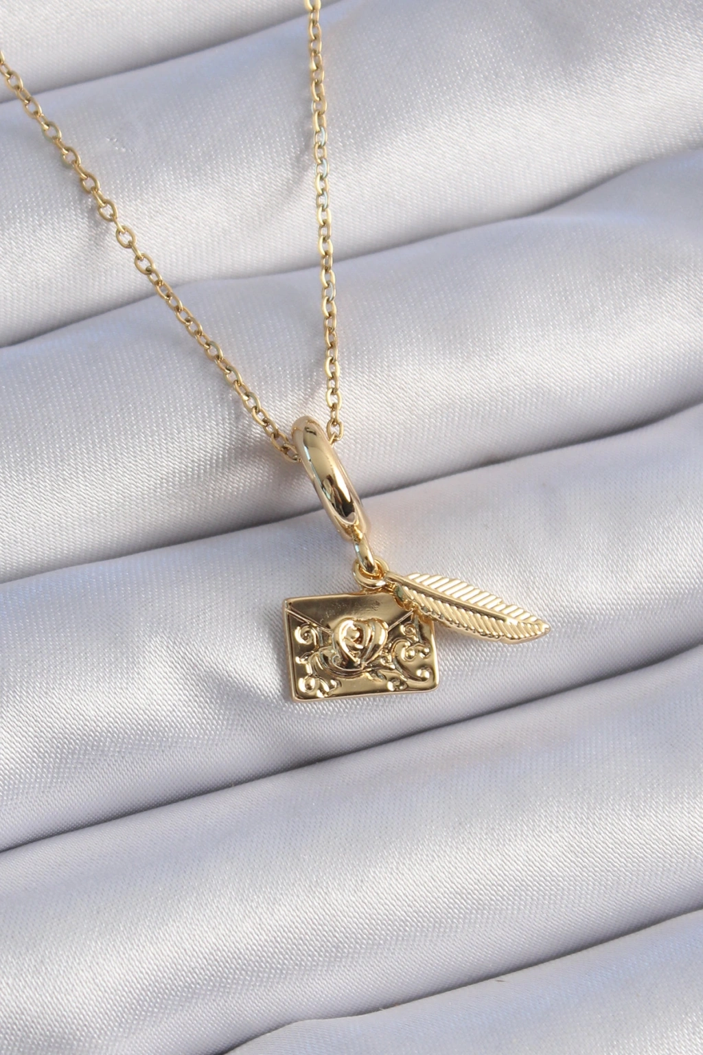 316L Çelik Gold Renk Kalp Detay Mektup Figür Charm Model Kadın Kolye