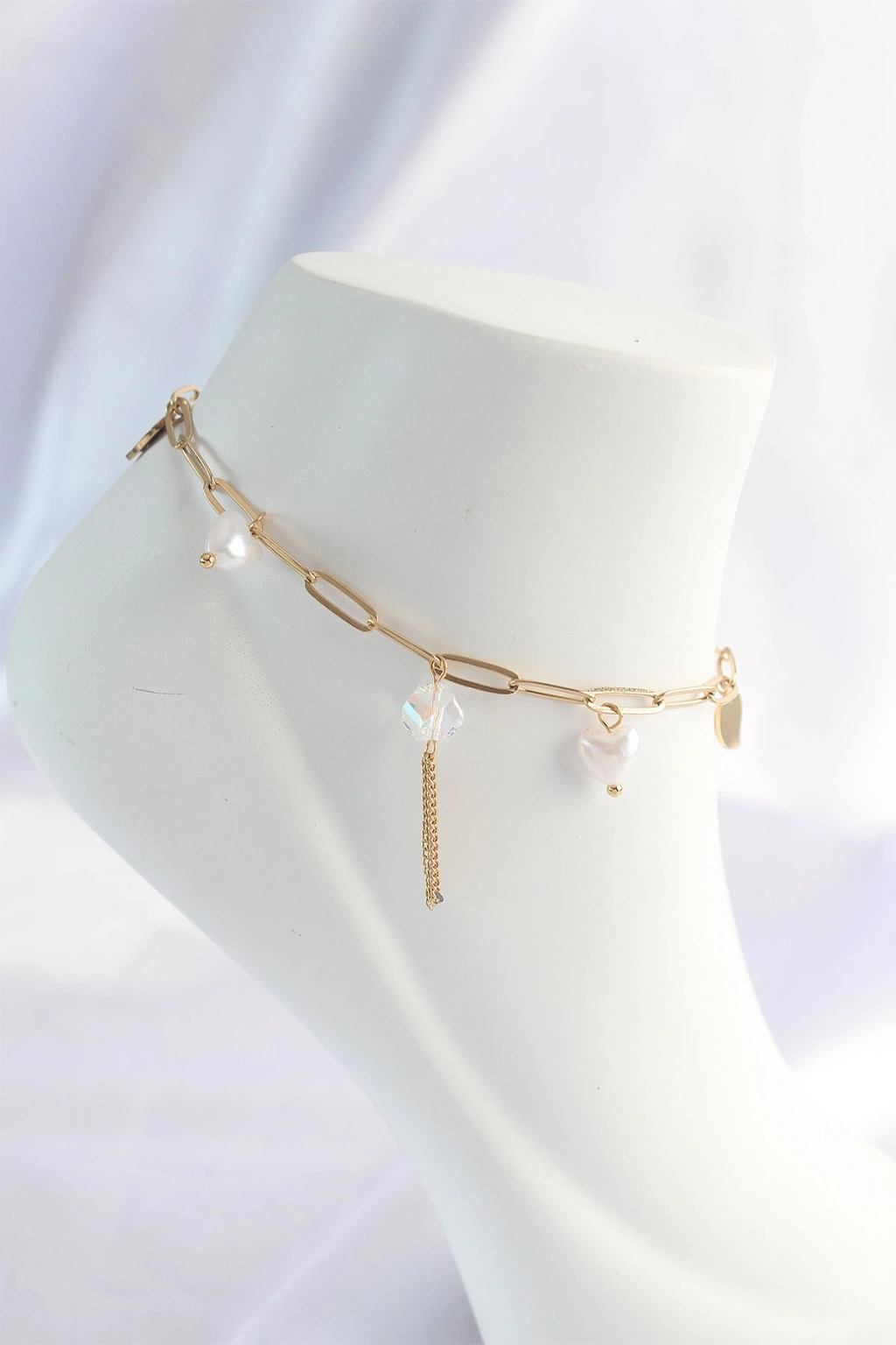 316L Çelik Gold Renk Beyaz Kalpli 2li Halhal