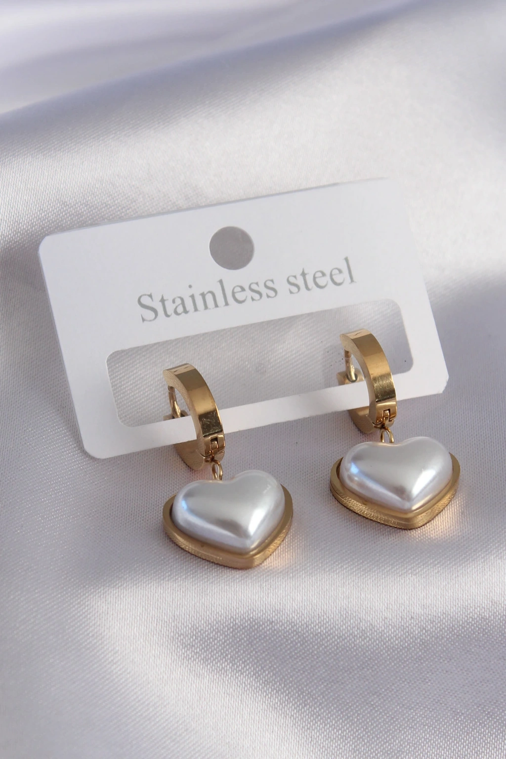 316l Çelik Gold Renk Kalp Model Kadın Küpe