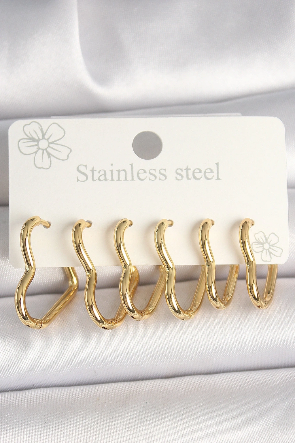 Çiçek Model Gold Renk Pirinç 3'lü Kadın Küpe Seti