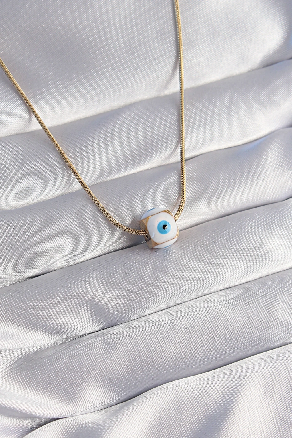 316L Çelik Gold Renk Mineli Nazar Model Kolye