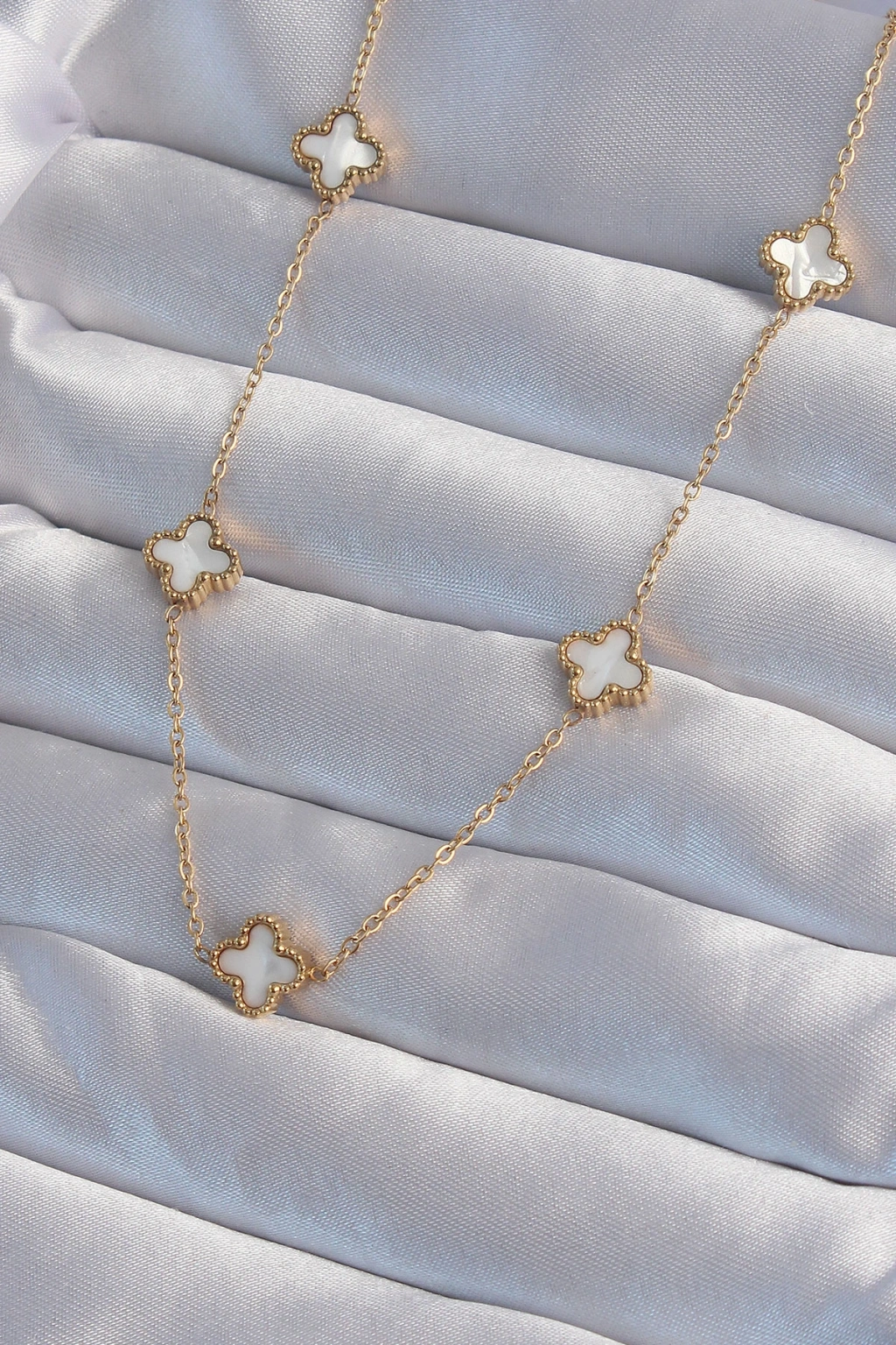 316l Çelik Gold Renk Minimal Beyaz Sedefli Yonca Kolye