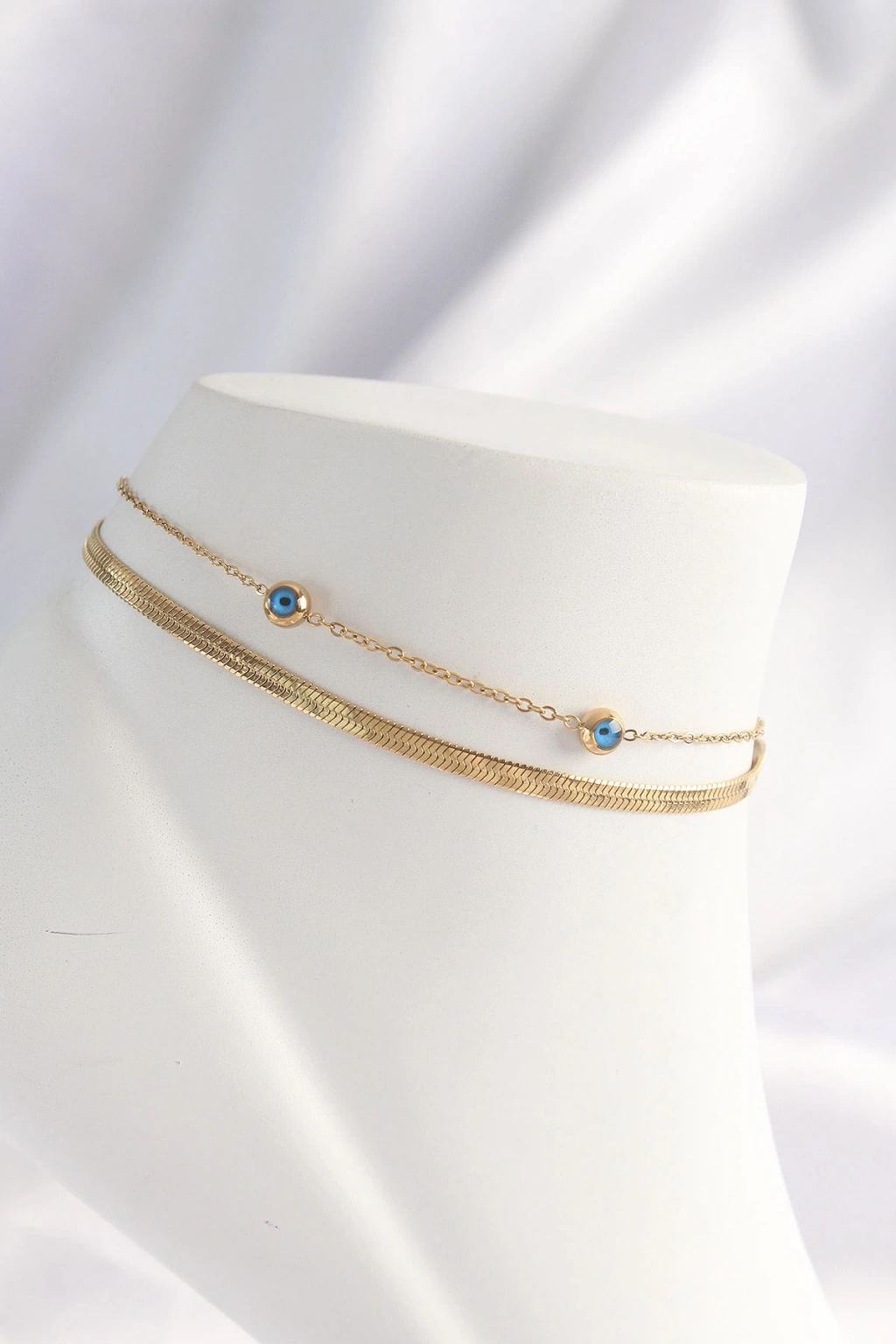 316l Çelik Gold Renk Nazar Boncuk Tasarımlı 2li Halhal