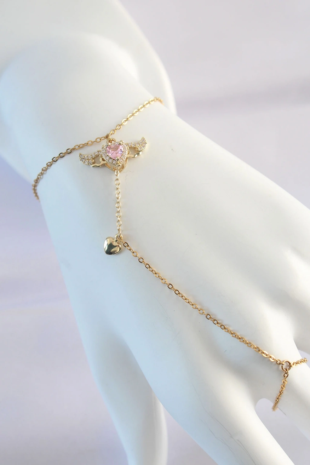 316l Çelik Gold Renk Pembe Zirkon Taşlı Kanatlı Kalp Model Şahmeran