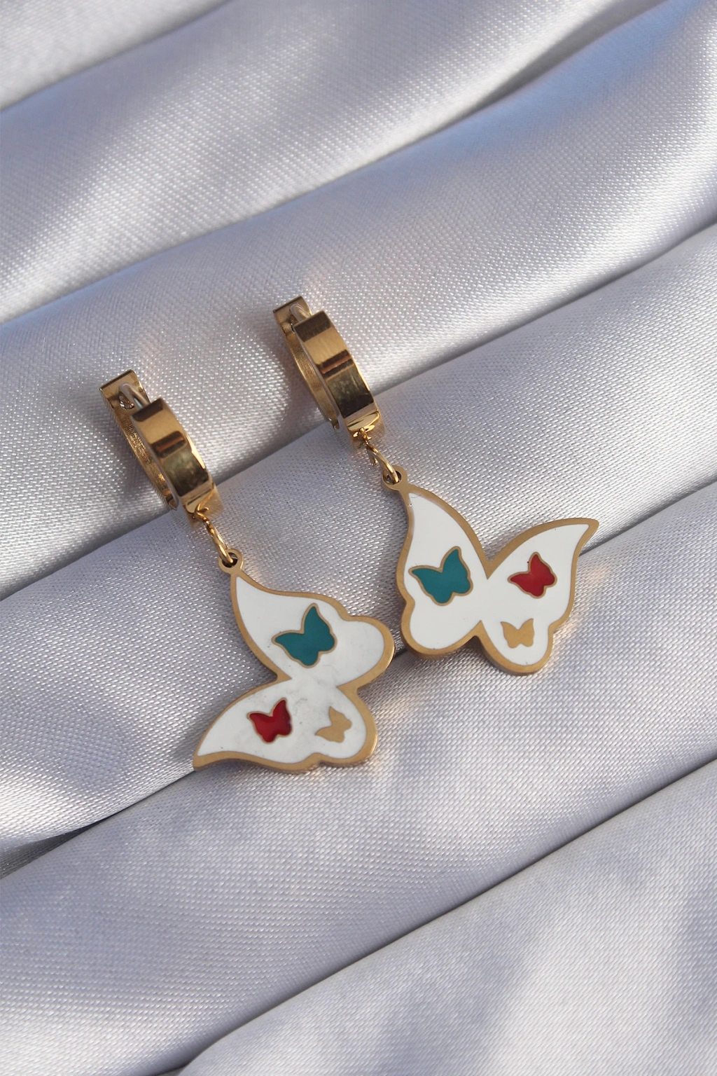 316L Çelik Gold Renk Renkli Mineli Kelebek Küpe
