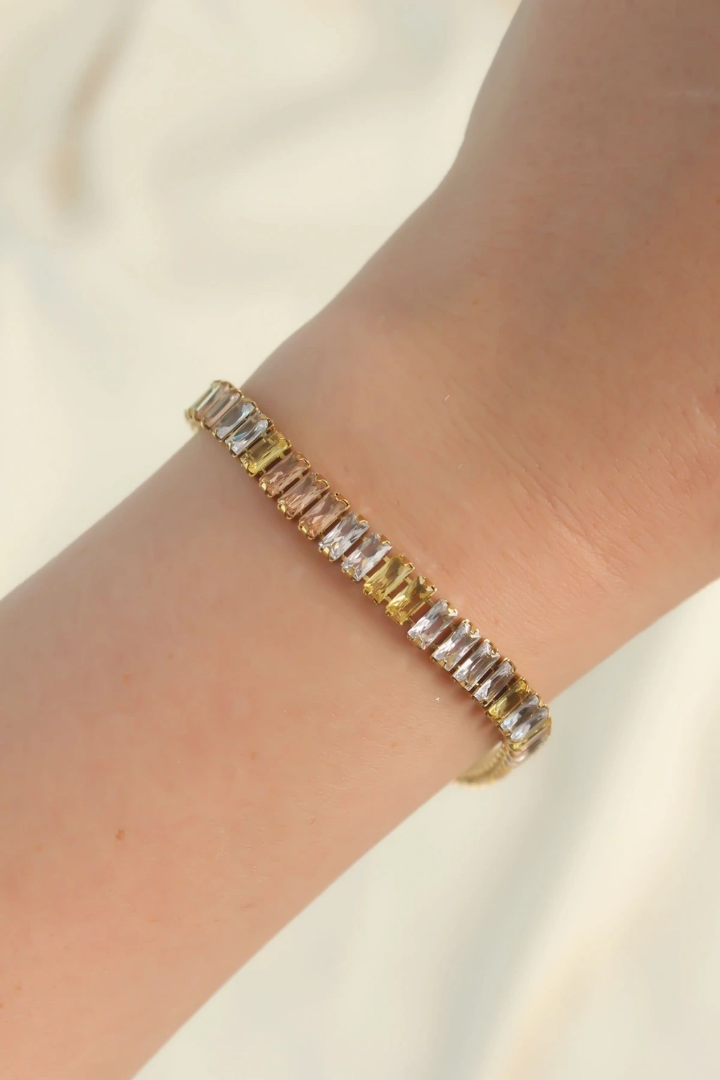 Pembe ve Beyaz Zirkon Taşlı Gold Renk Su Yolu Kadın Bileklik
