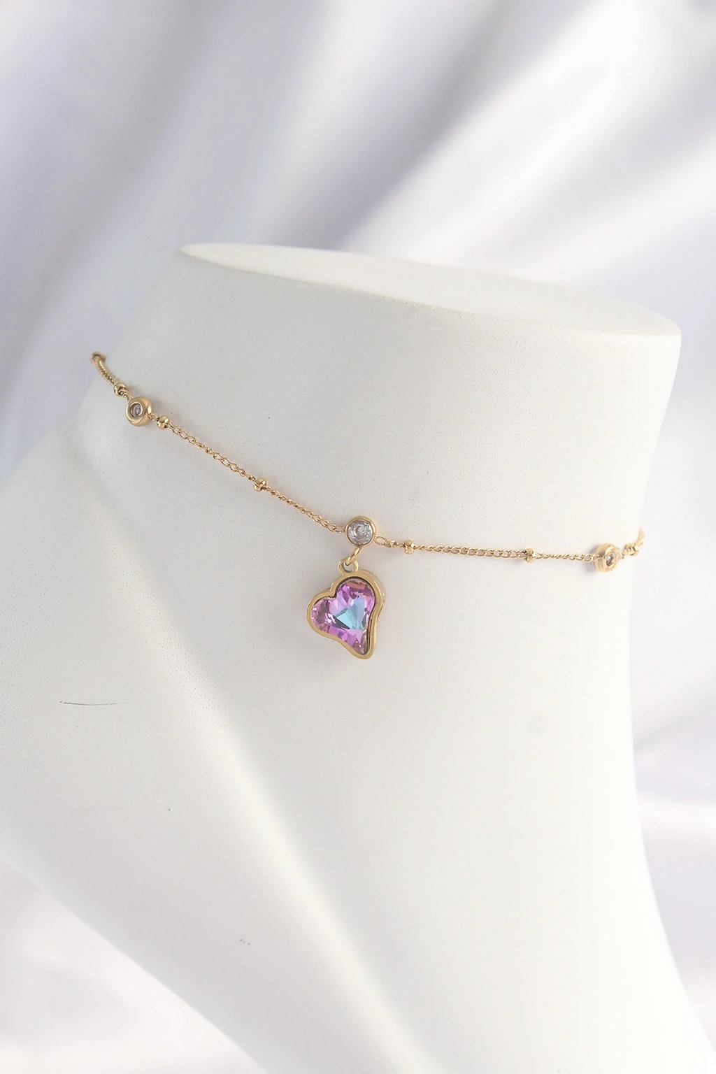 316L Çelik Gümüş Renk Zirkon Taş Detay Kalpli Halhal