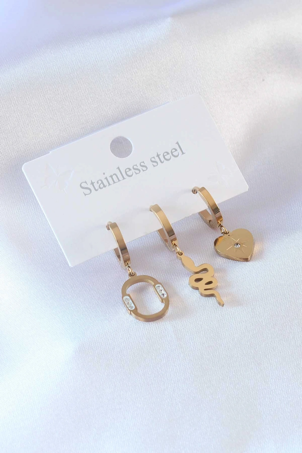 316l Çelik Gold Renk Yılan Model Kalp Detay Zirkon Taşlı Kadın Küpe