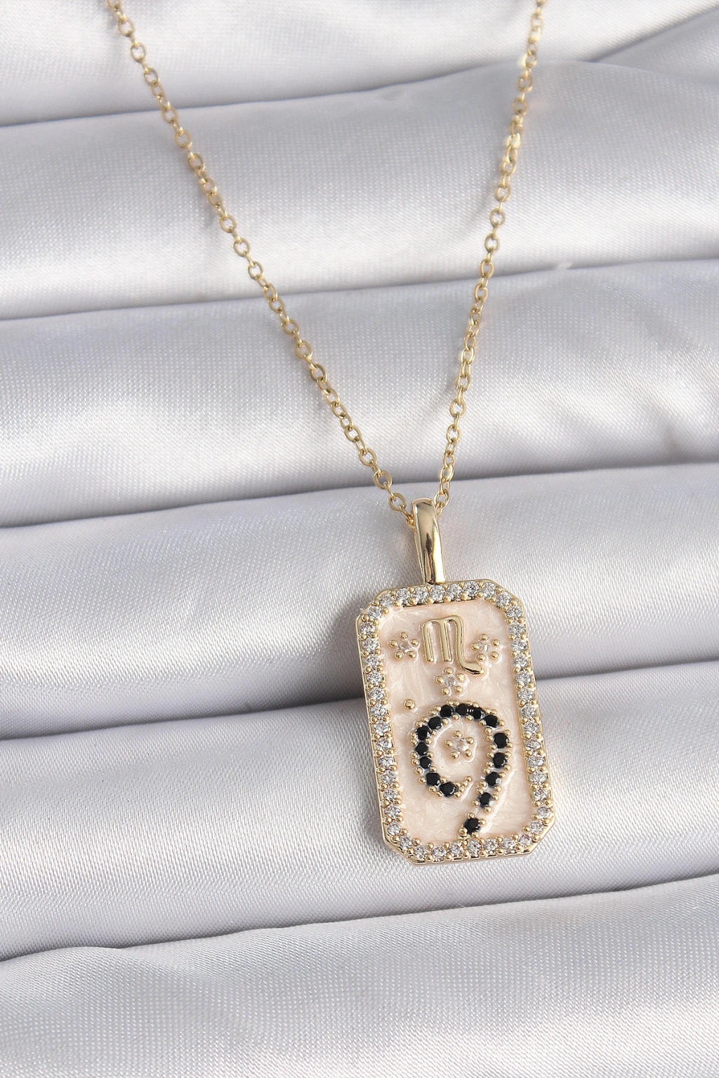 316L Çelik Gold Renk Zincir Akrep Burcu Zirkon Taşlı Kadın Kolye