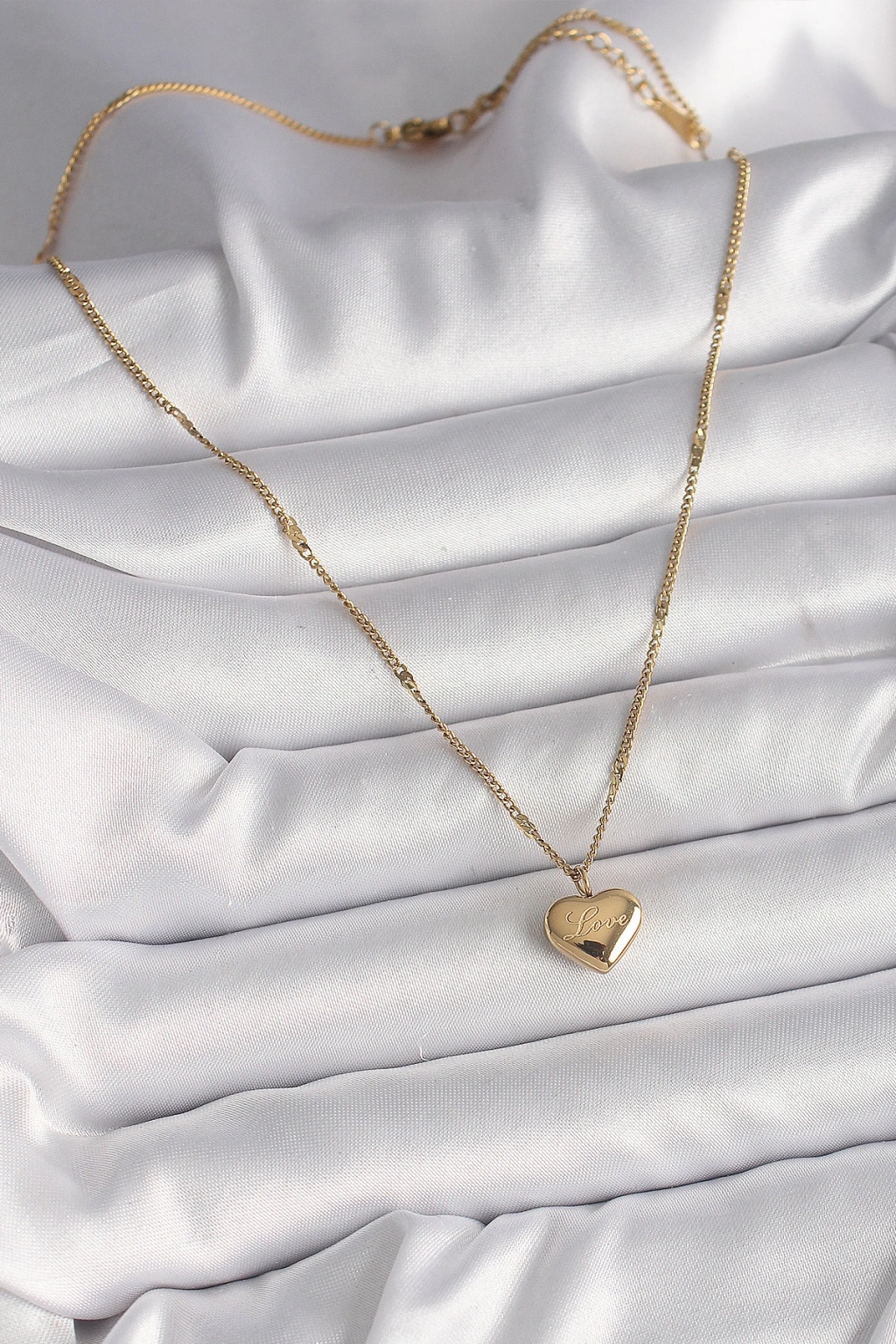 316l Çelik Gold Renk Zincir Love İşlemeli Kalp Figür Kadın Kolye