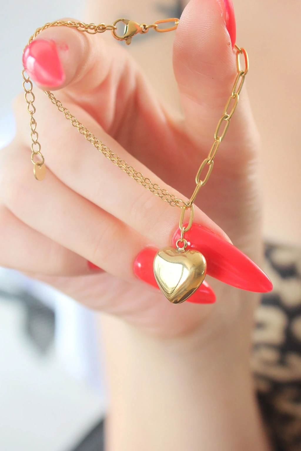 316l Çelik Gold Renk Zincir Model Kalp Figür Kadın Bileklik