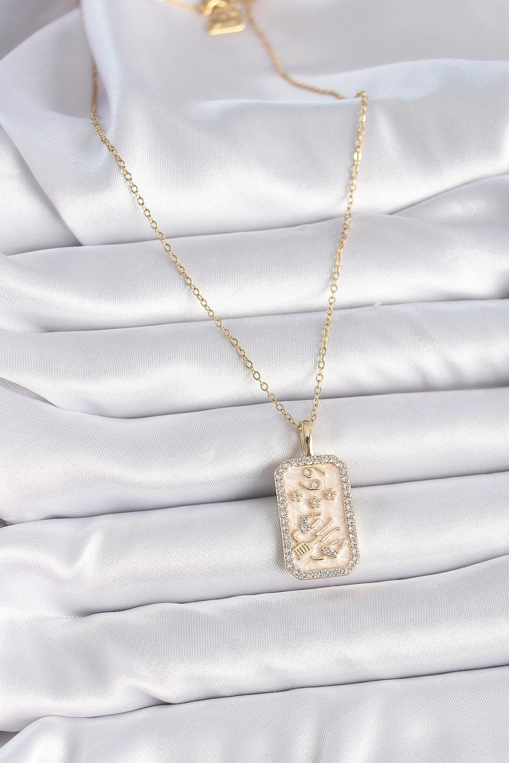 316L Çelik Gold Renk Zincir Yengeç Burcu Zirkon Taşlı Kadın Kolye