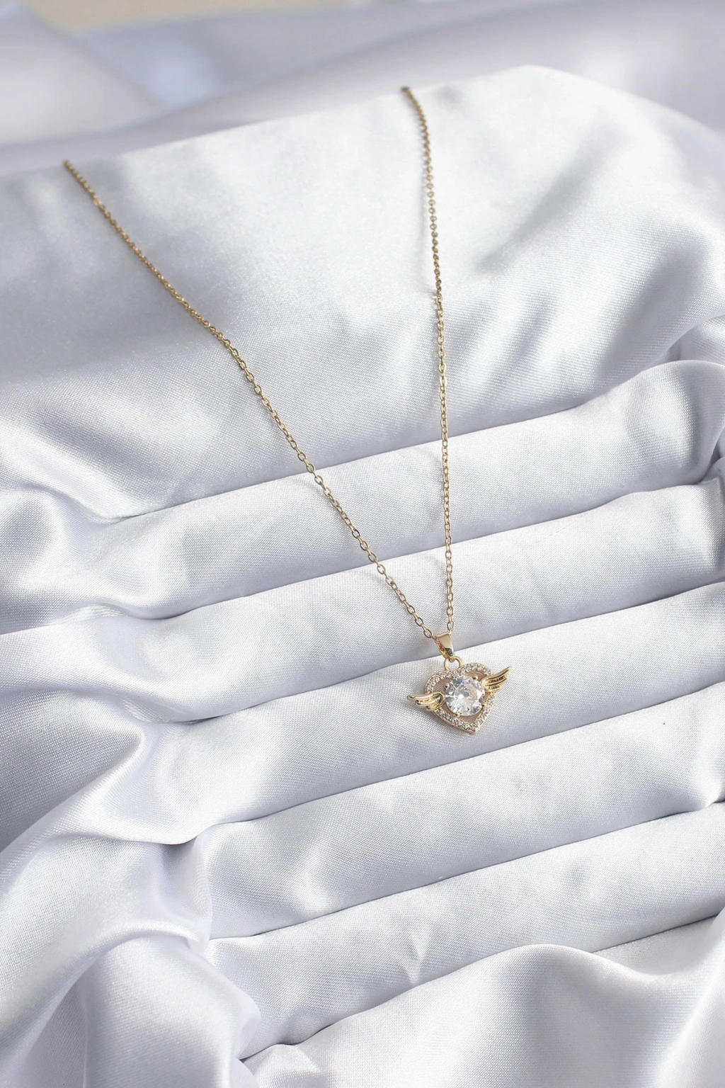 316l Çelik Gold Renk Zincir Zirkon Taşlı Kalp Model Kadın Kolye