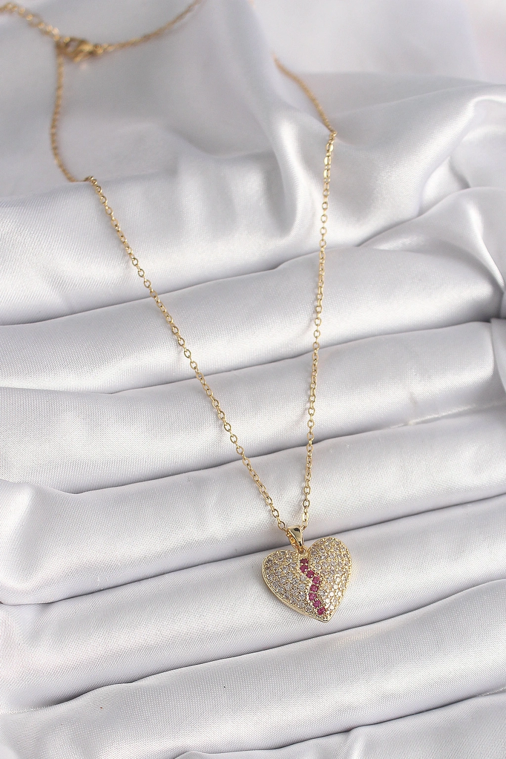 316L Çelik Gold Renk Zincir Zirkon Taşlı Kalp Model Kadın Kolye
