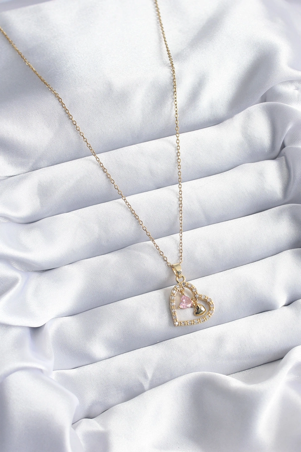 316L Çelik Gold Renk Zincir Zirkon Taşlı Kalp Model Kadın Kolye