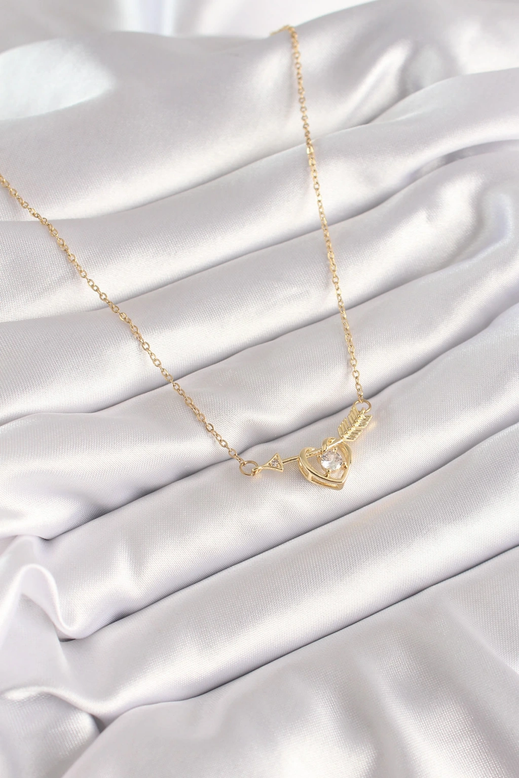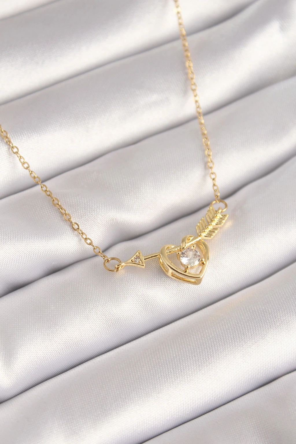 316l Çelik Gold Renk Zincir Zirkon Taşlı Ok Kalp Model Kadın Kolye