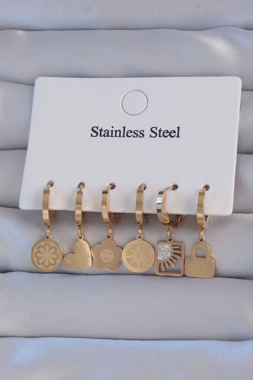 Çiçek Model Gold Renk Pirinç 3'lü Kadın Küpe Seti