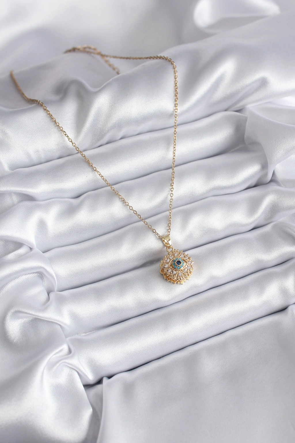 316l Çelik Gold Renk Zirkon Taşlı Göz Model Kadın Kolye