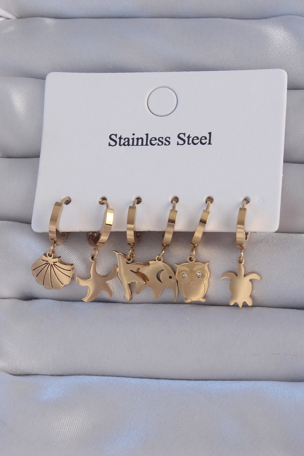 316L Çelik Gold Renk Zirkon Taşlı Hayvan Figürlü Deniz Yıldızı Model Halka Küpe Seti