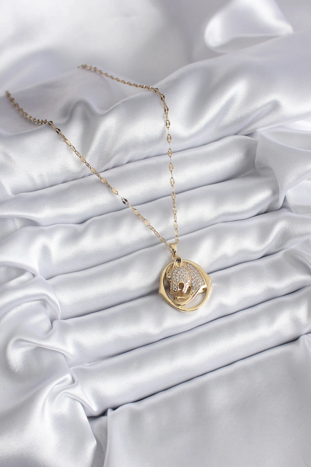 316l Çelik Gold Renk Zirkon Taşlı Jaguar Model Kadın Kolye