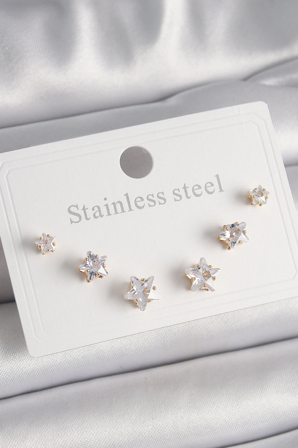 316l Çelik Gold Renk Zirkon Taşlı Yıldız Model Kadın Küpe Seti