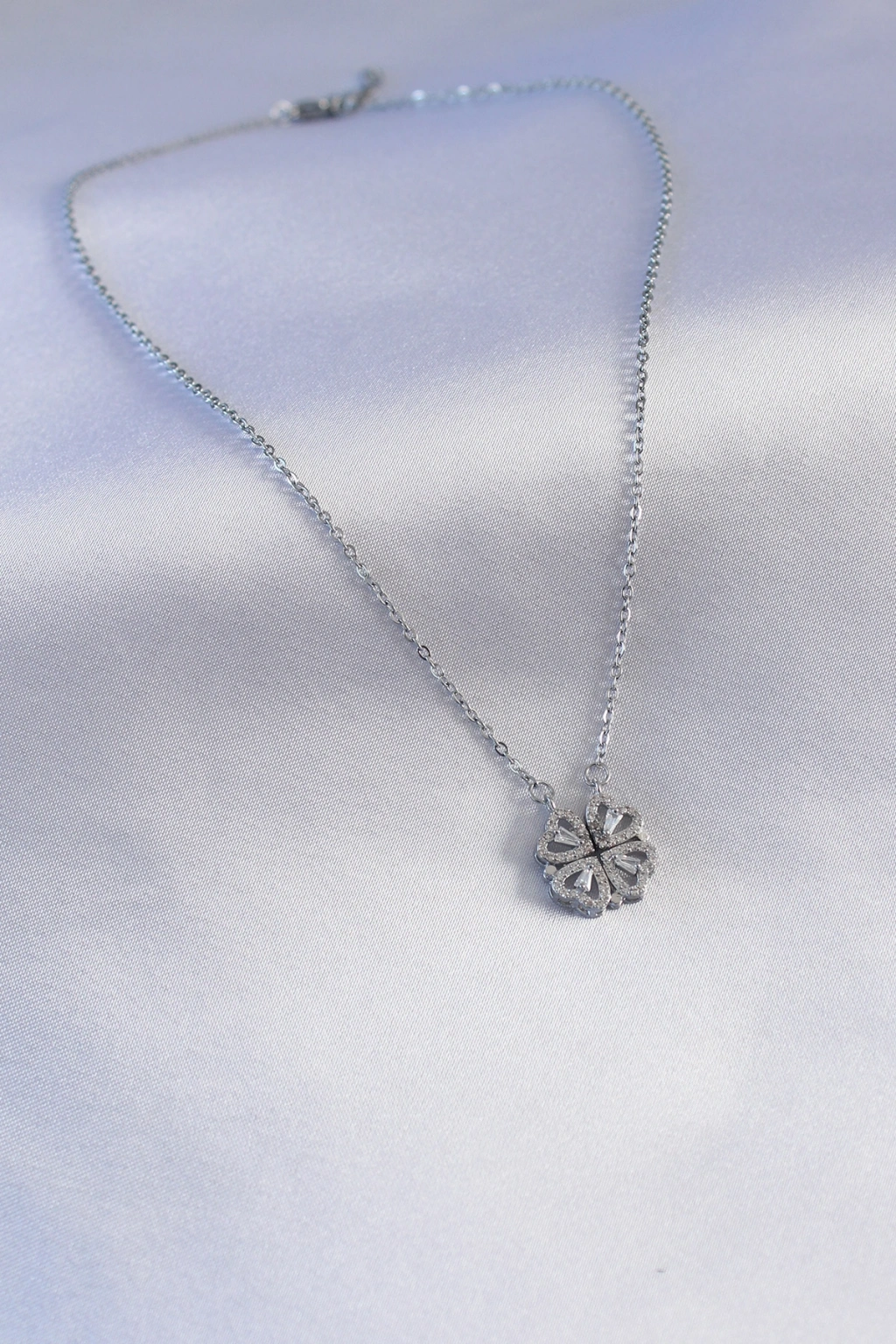 316L Çelik Gümüş Renk Açılır Yonca Model Kadın Kolye