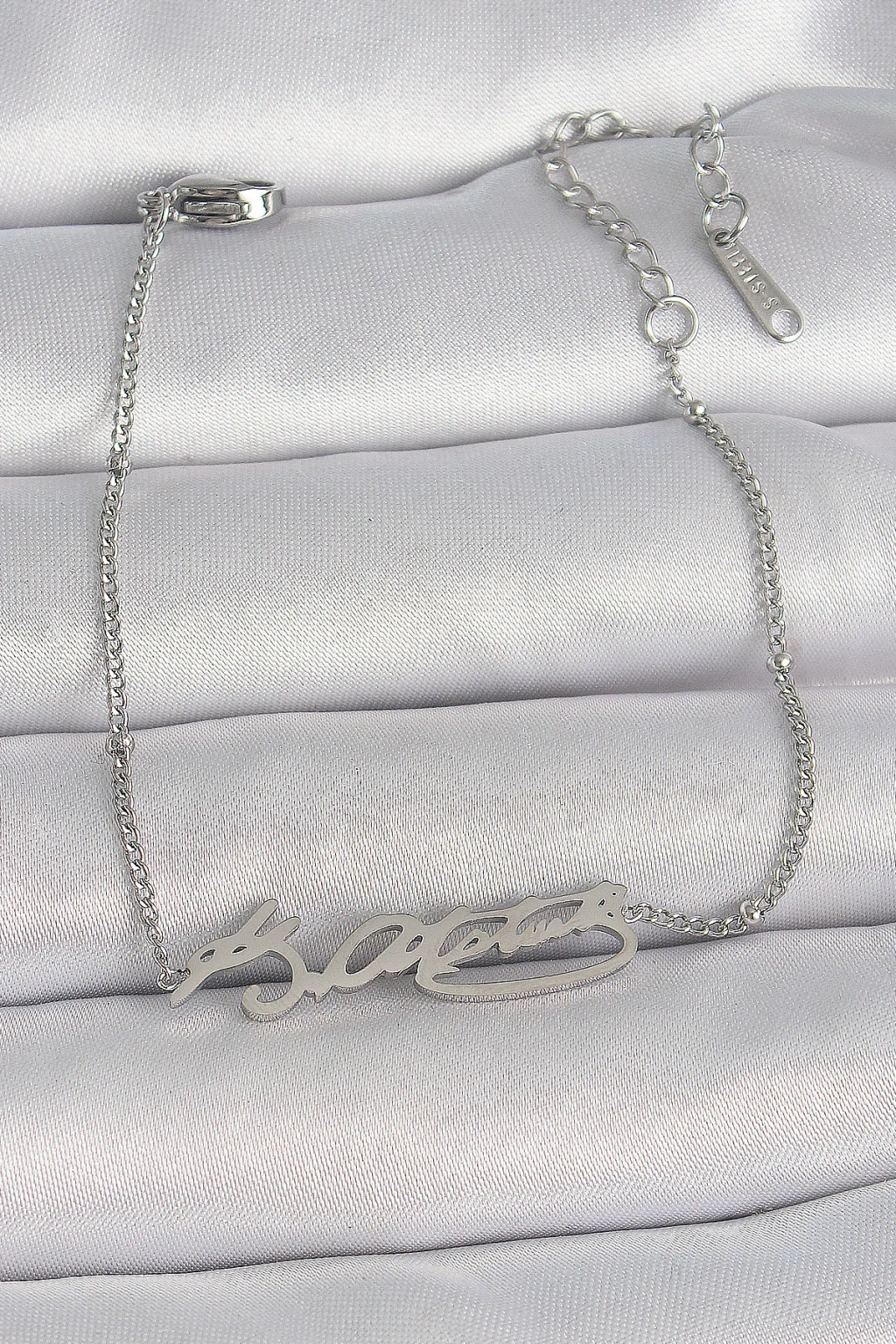 316l Çelik Gümüş Renk Atatürk İmza Model Kadın Bileklik