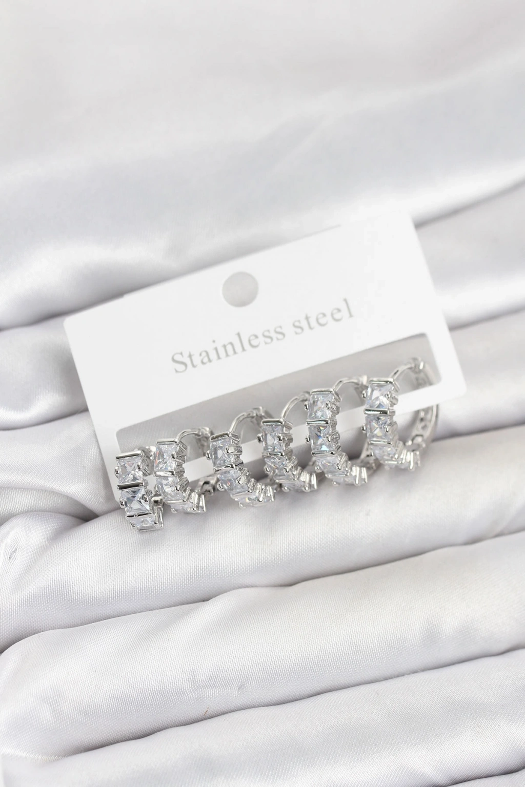 316L Çelik Gümüş Renk Baget Zirkon Taşlı Halka Küpe Seti