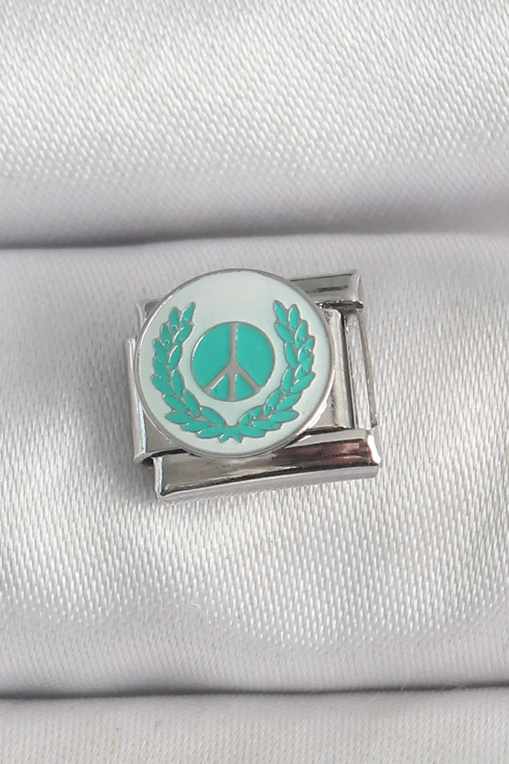 316L Çelik Gümüş Renk Beyaz Mavi Barış İşareti İşlemeli Nomination Charm