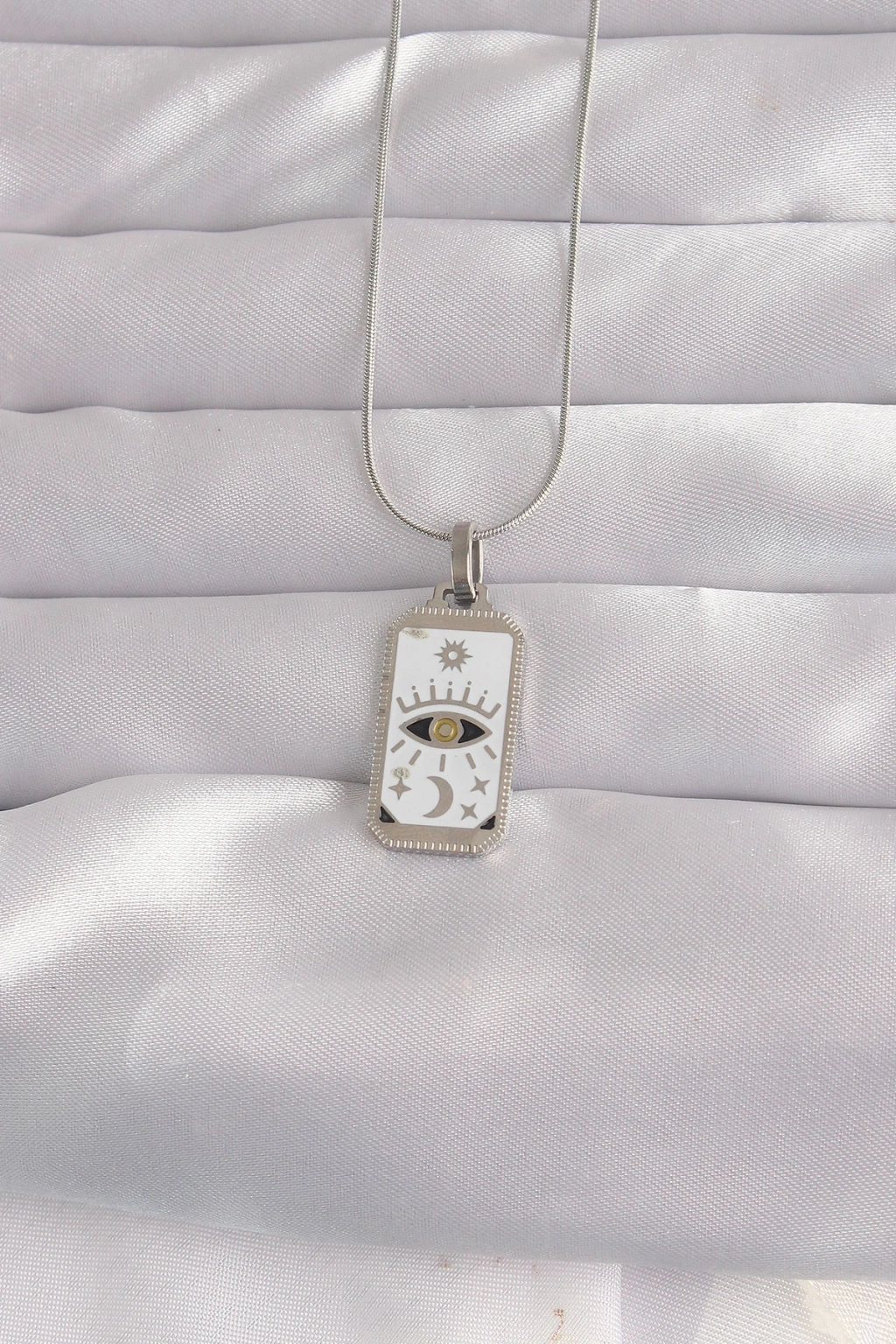 316l Çelik Gümüş Renk Beyaz Mineli Göz Figür Tarot Kolye