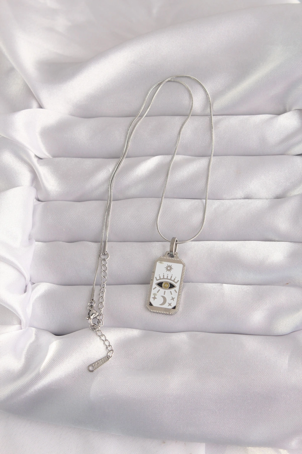 316L Çelik Gümüş Renk Beyaz Mineli Göz Figür Tarot Kolye