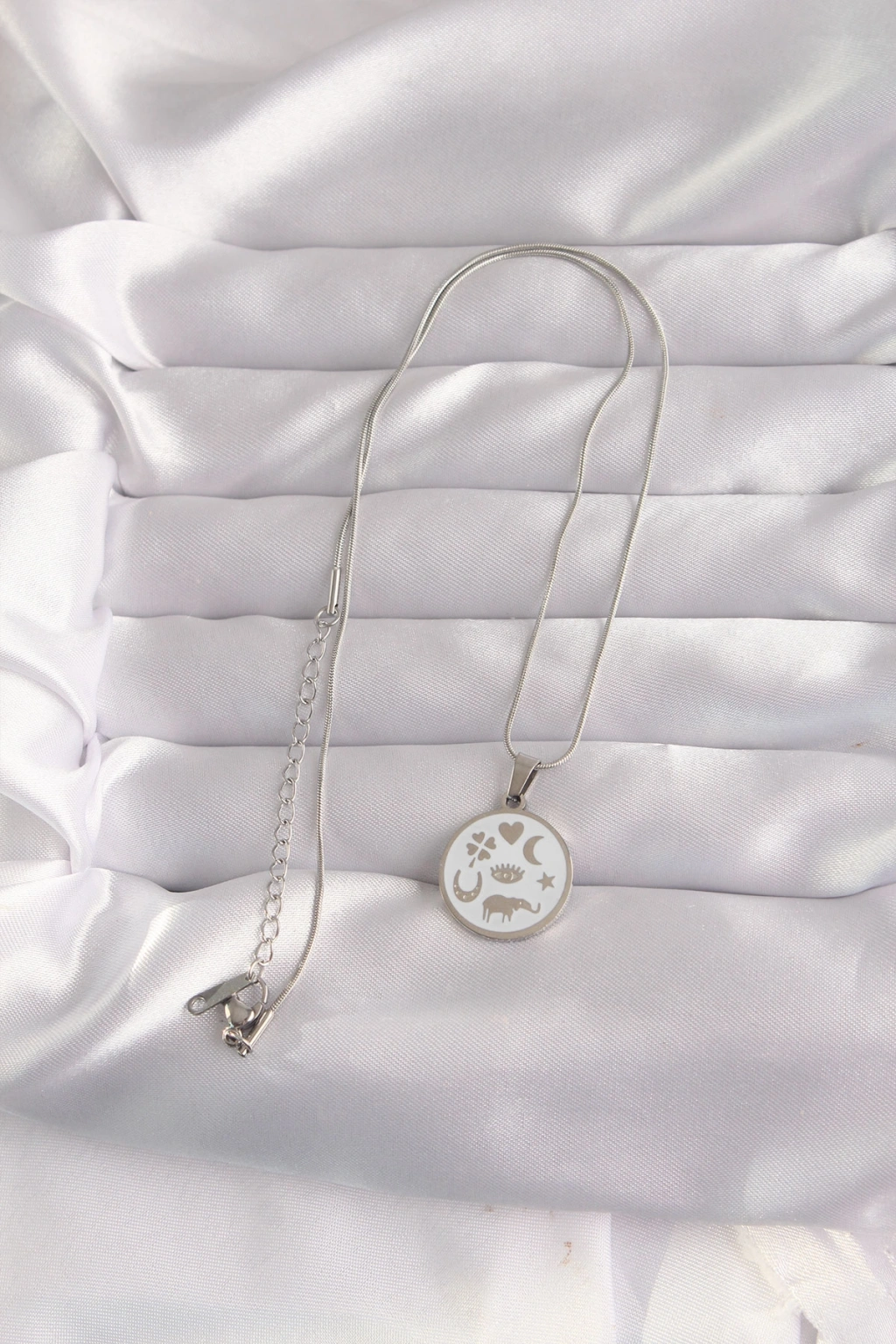 316L Çelik Gümüş Renk Beyaz Mineli Karışık Figürlü Tarot Kolye