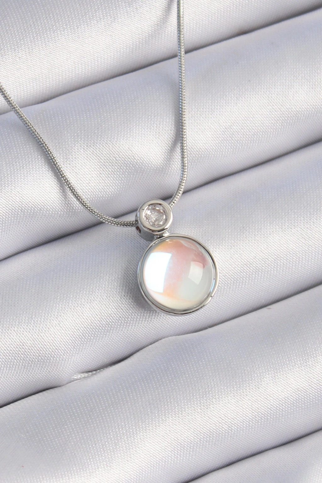 316l Çelik Gümüş Renk Beyaz Sedefli Vintage Model Kadın Kolye