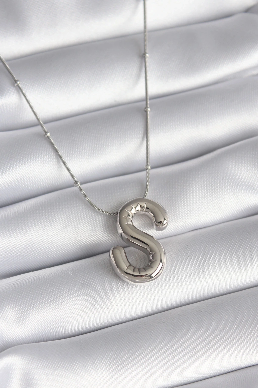 316l Çelik Gümüş Renk Bubble "s" Harf Model Kadın Kolye