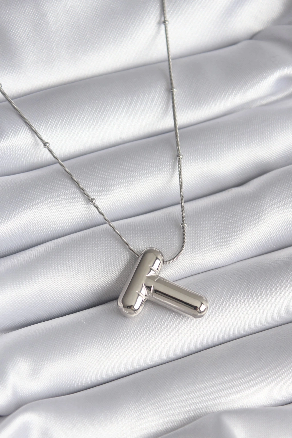 316L Çelik Gümüş Renk Bubble "T" Harf Model Kadın Kolye