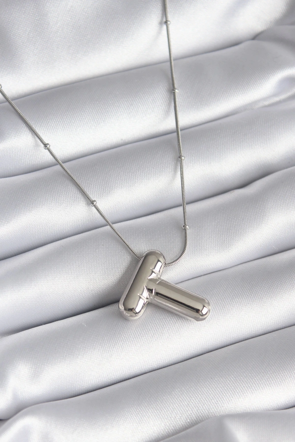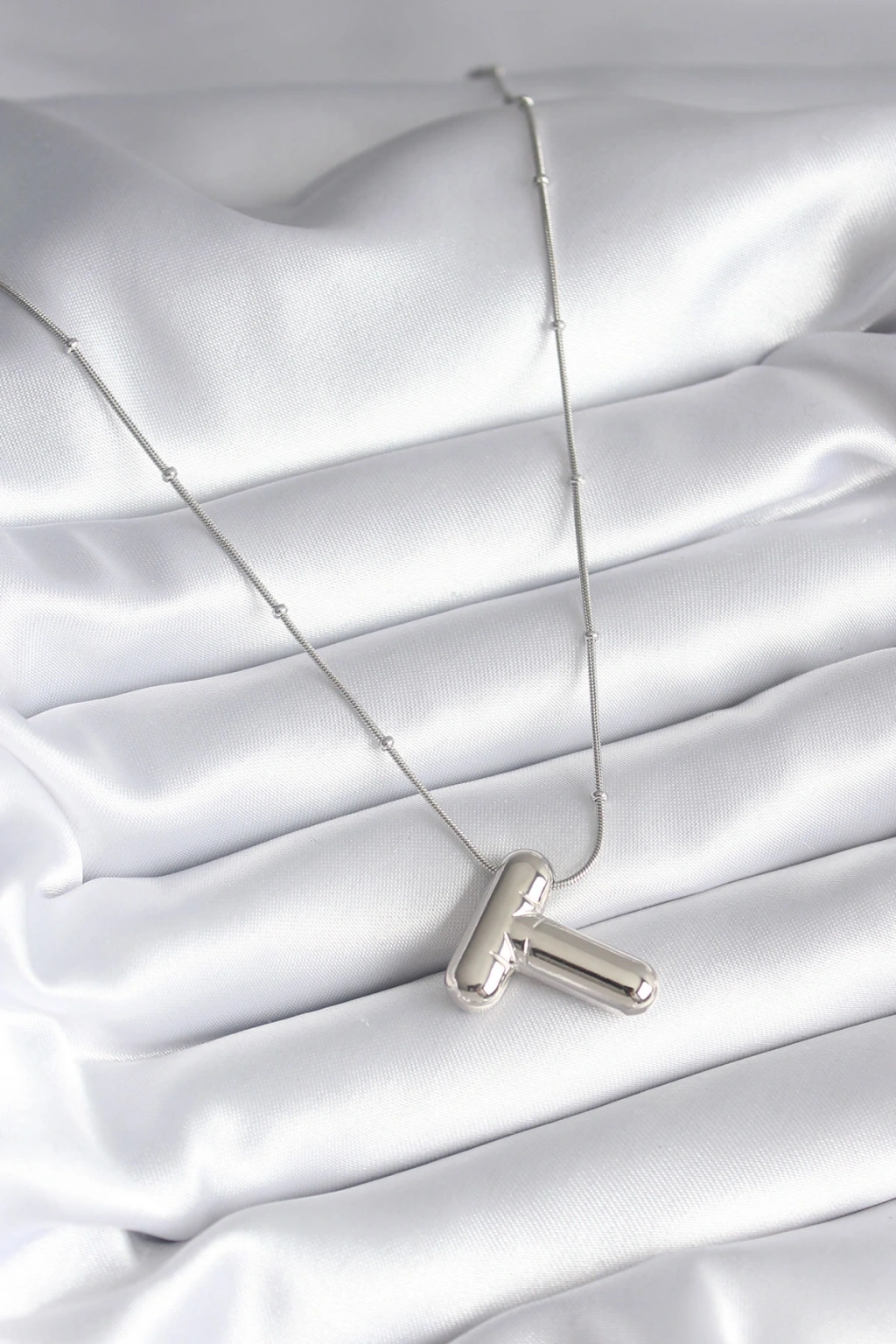 316l Çelik Gümüş Renk Bubble "t" Harf Model Kadın Kolye