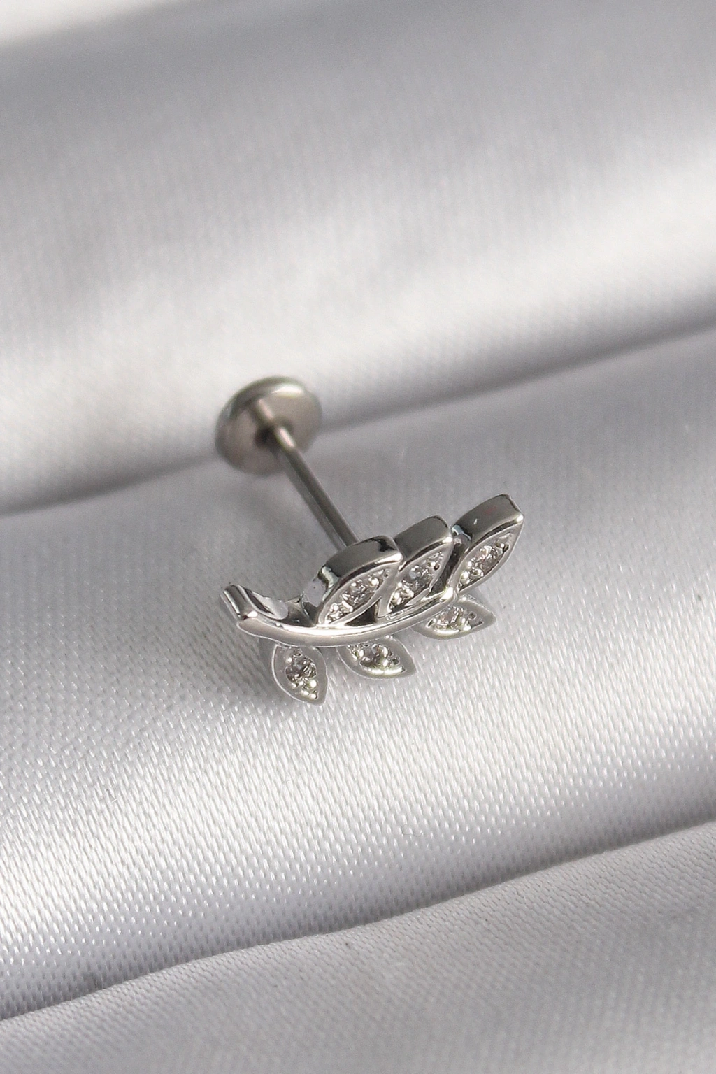 316L Çelik Gümüş Renk Dal Model Zirkon Taş Detaylı Tragus Piercing