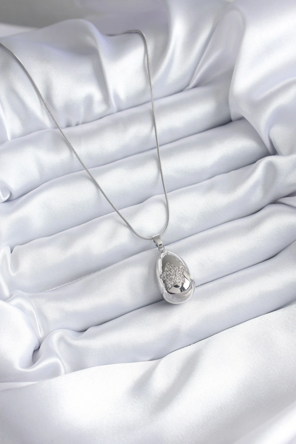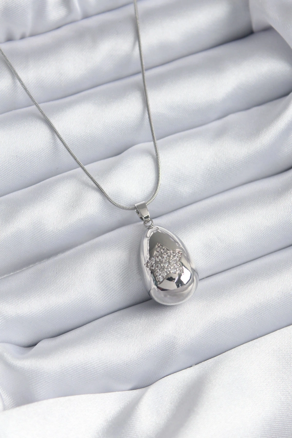 316l Çelik Gümüş Renk Damla Model Yıldız İşleme Zirkon Taş Detay Kadın Kolye