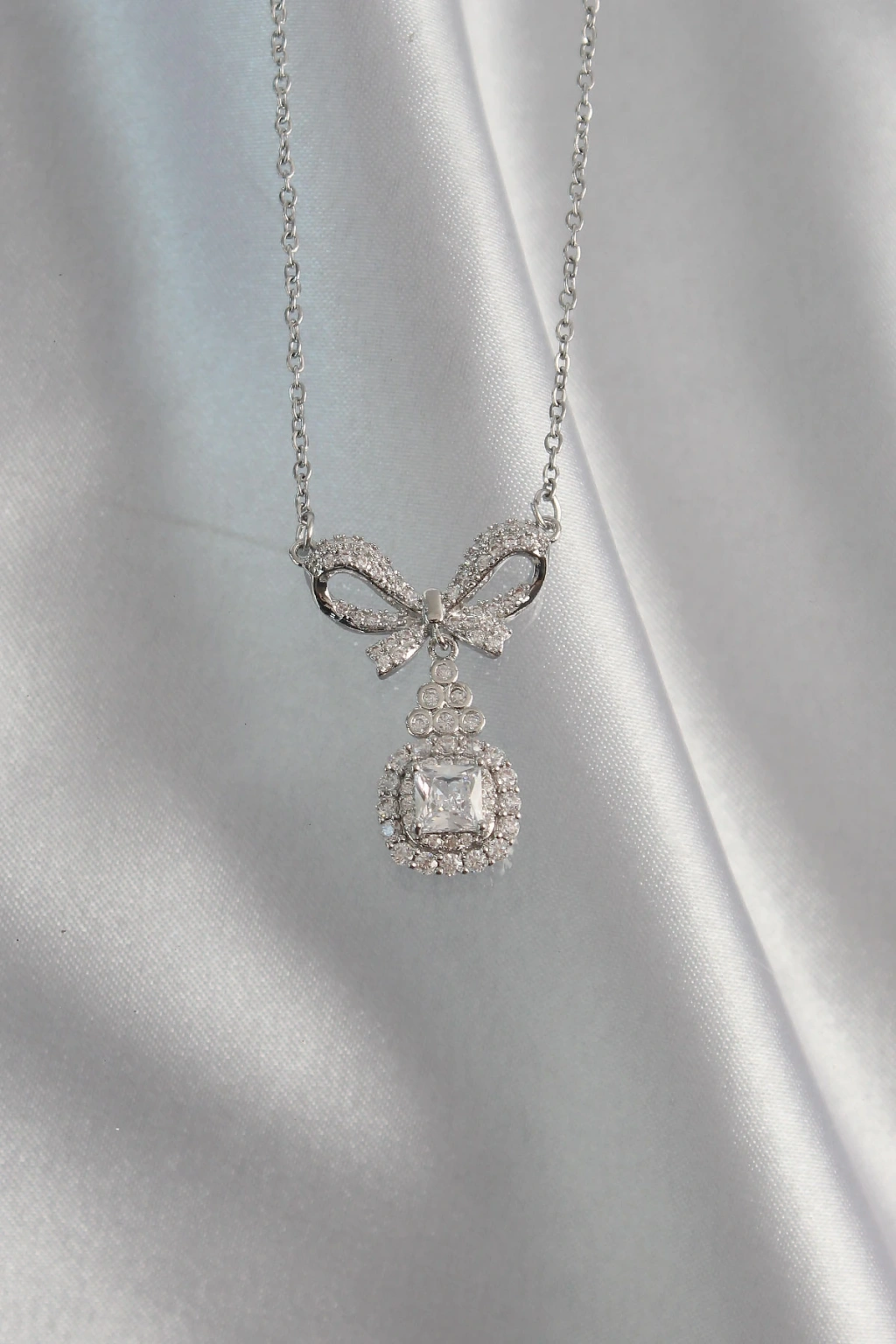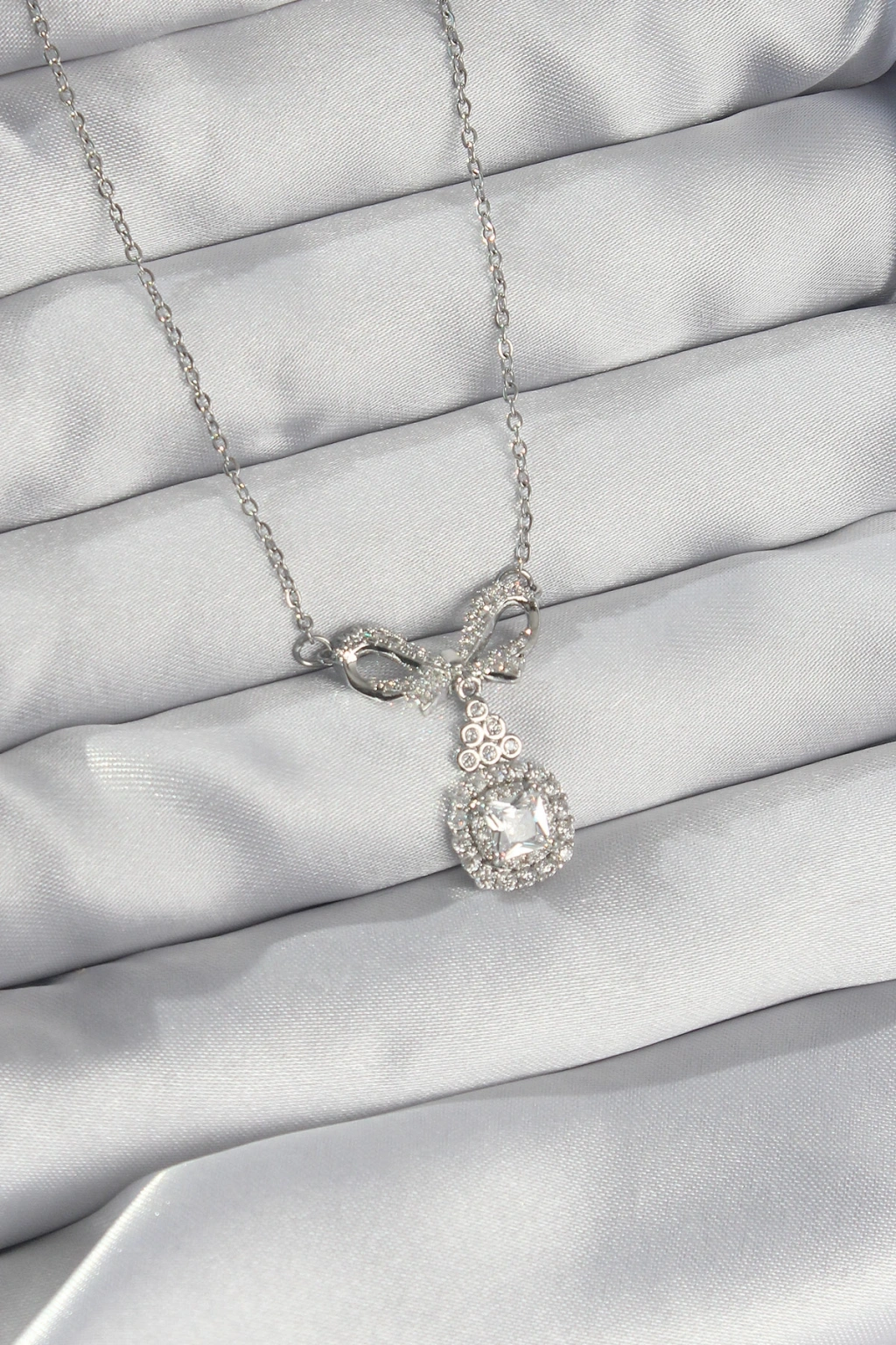 316l Çelik Gümüş Renk Fiyonk Detay Zirkon Taşlı Tektaş Kolye