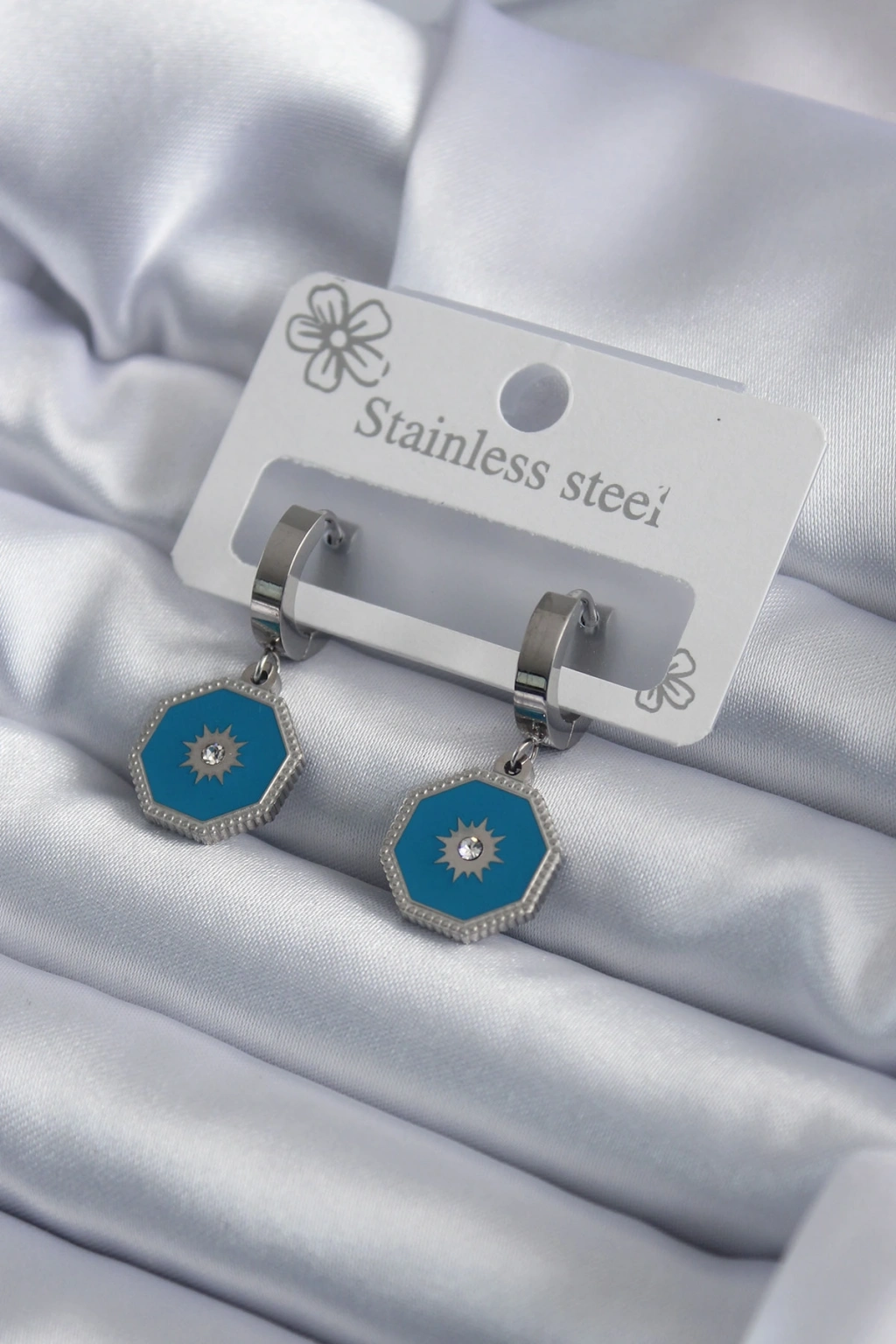 316L Çelik Gümüş Renk Geometrik Model Zirkon Taş Detay Kadın Küpe