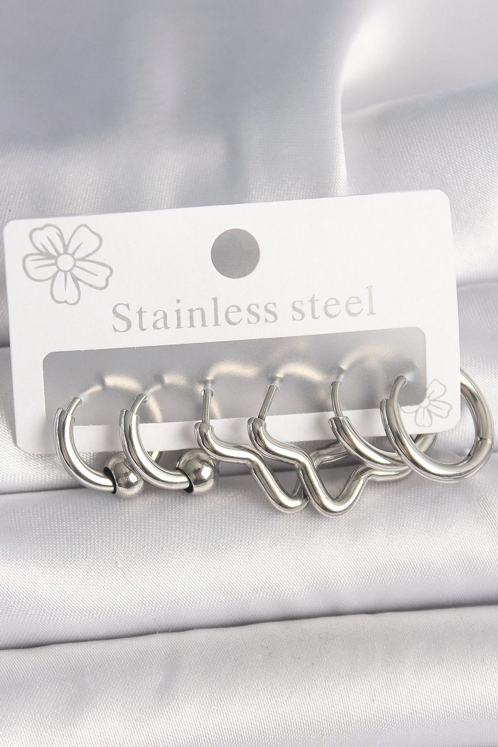 Yonca Model Gümüş Renk Pirinç 3'lü Kadın Küpe Seti